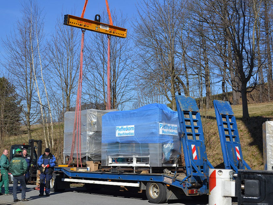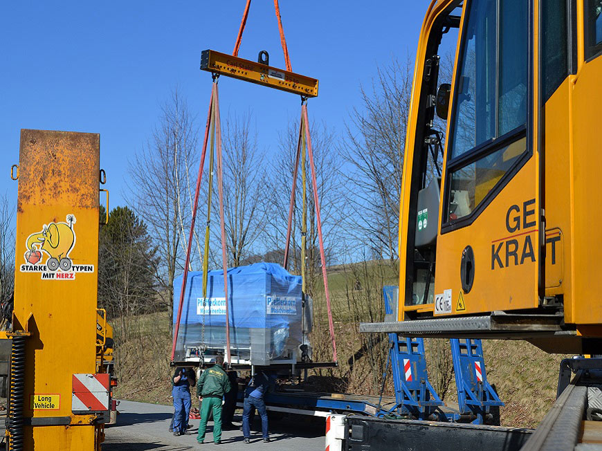 Entladen und Einbringen einer Presse (Masse 5,6t) unter beengten Platzverhältnissen