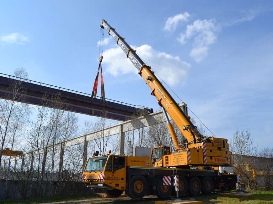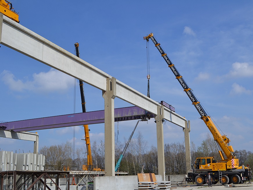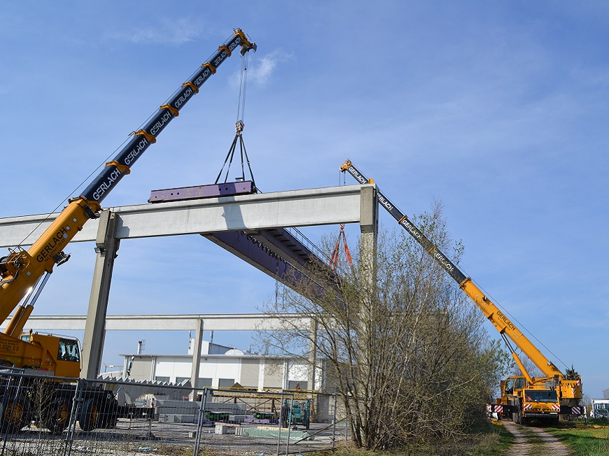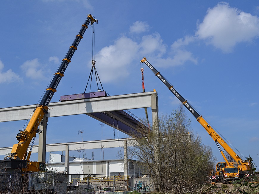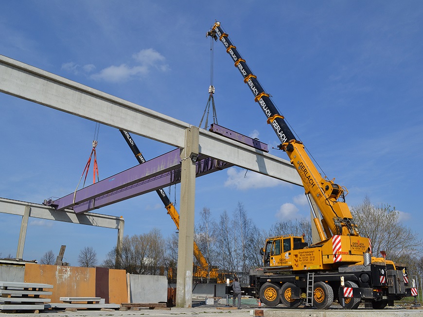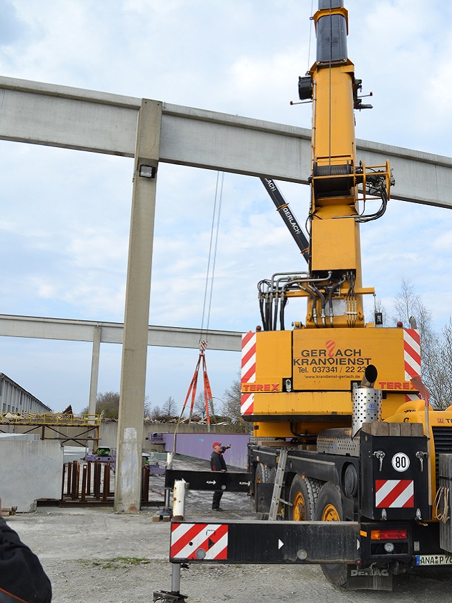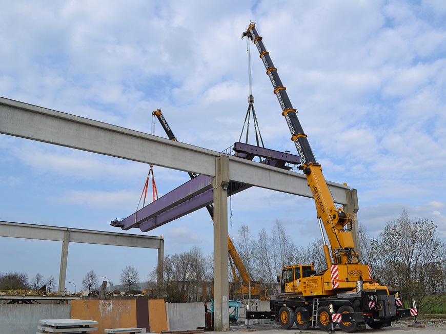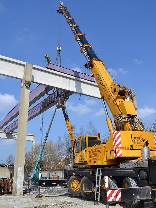 Nach dem Freiheben wurde der Träger zwischen die Kranbahn gedreht und abgelassen