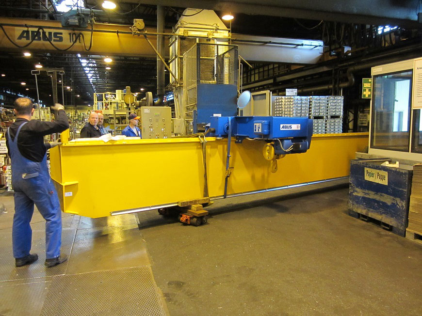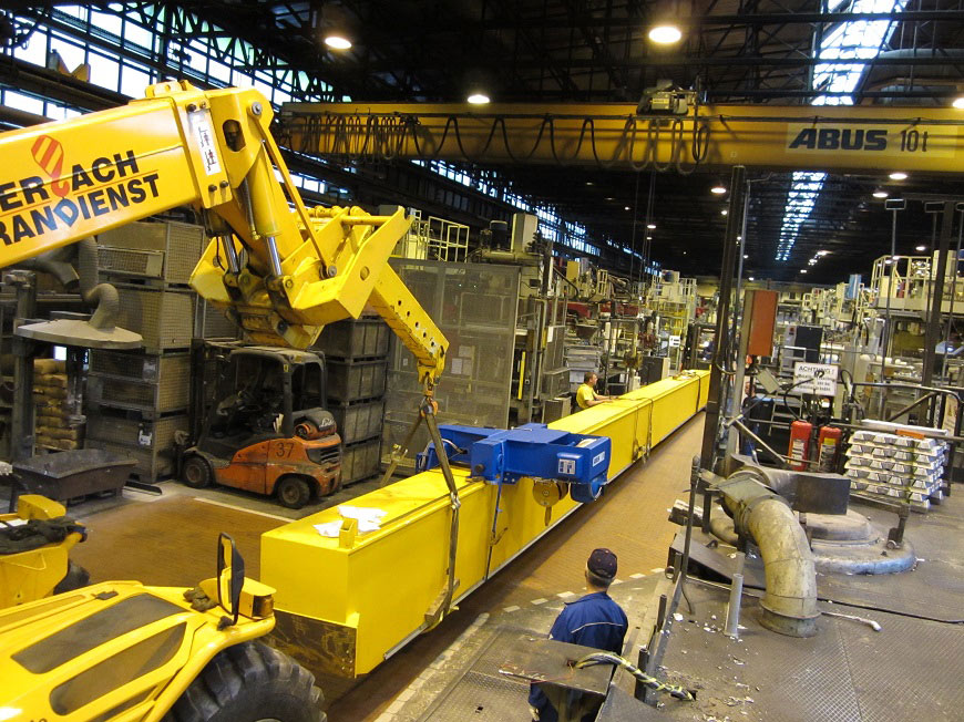 Einbringen und Montage eines Kranbahnträgers (Masse ca. 9 Tonnen)