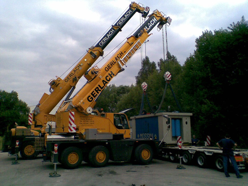 Im Bereich der Kranvermietung stehen uns fünf, teilweise allrad-betriebene Autokrane mit einem Traglast-Bereich zwischen 30 und 140 Tonnen zur Verfügung. Bei vielen Einsatzfällen ist es aus zeitlicher und wirtschaftlicher Sicht besser, auf einen Autokran statt auf andere Spezialgeräte zurückzugreifen. Neben einem Personenkorb, einem Beton- bzw. Schüttgutspender bieten wir auch eine Schuttmulde sowie eine Palettengabel an. Somit werden unsere Autokrane zu vielfältigen Hub- und Zugangsgeräten. Weiterhin bieten wir im Rahmen unseres Dienstleistungsangebotes eine bundesweite Kran-Disposition an.