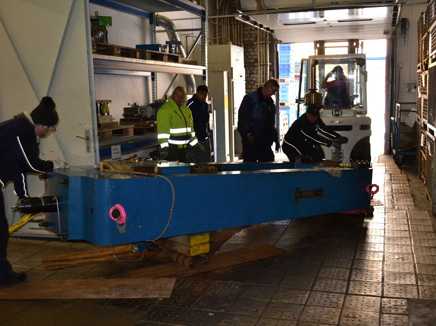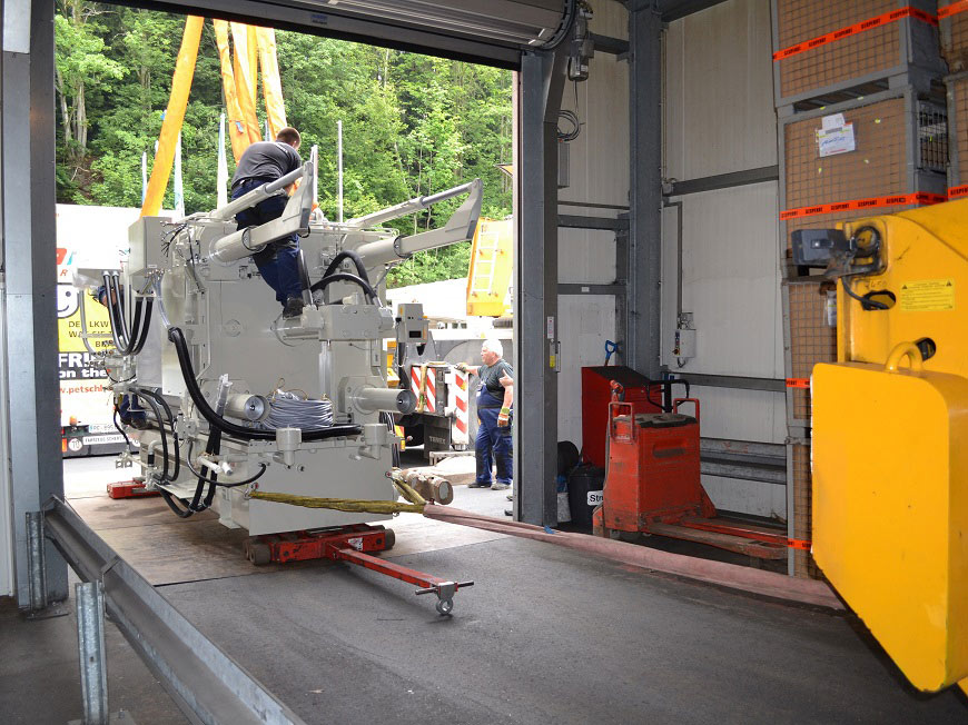 Ausbringen einer Stanzmaschine auf Schwerlastfahrwerken